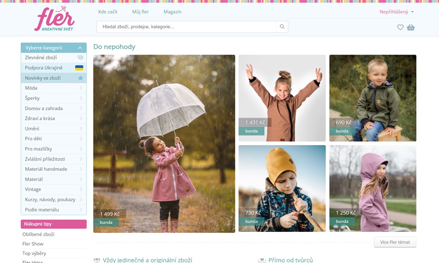 Je asi největší na českém internetu. Co zde můžete prodávat? Tržiště jsou tématicky zaměřené na: bižuterii (náramky, prsteny, naušnice aj.), umění, výrobky pro dětí, drogerii, drobnosti pro dům a zahradu, věci pro domácí mazlíčky apod. Můžete využít tématických okruhů svátků, jako Vánoce, Velikonoce, Valentýn, Svatby, Narozeniny a jiné oslavy. Dá se říci, že FLER je takový jeden velký kouzelný krámek plný drogerie a dekorací a podle toho je i uzpůsobený jeho vzhled. Není jen tak náhodou že 2/3 uživatelů, ale i tvůrců jsou ženy.