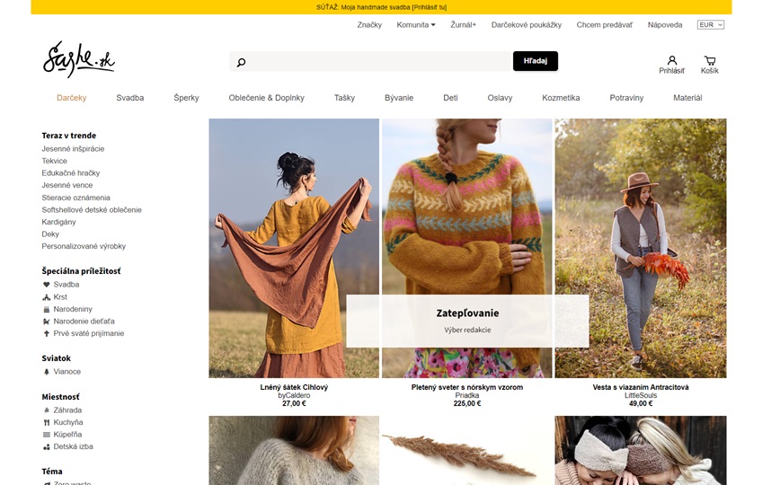 Není to zcela to samé. Ale Sashe je jedním z největších na slovensku a vznikl ve stejné době jako Fler. Tedy v roce 2009. Mohou zde prodávat i češi s tím rozdílem, že si holt musí zvyknout, že budou prodávat v EURECH. Svým obsahem opět prodáváte to samé, co na Fleru, tedy od drogerie až po dekorace. Hodně je to tady zaměřené na ekologickou modu, což je první, co vás praští do nosu, protože převážně část obchodu vypadá jako eko-fashion. Ale při delším pohledu najdete vše, co na jiných handmadech ve své kategorii. Nevýhodou je kapku vyšší poštovné pro čechy, ideální pro slováky. Takže tento server je dobrý spíše na proniknutí na nový trh pro Expanzní handmakery.